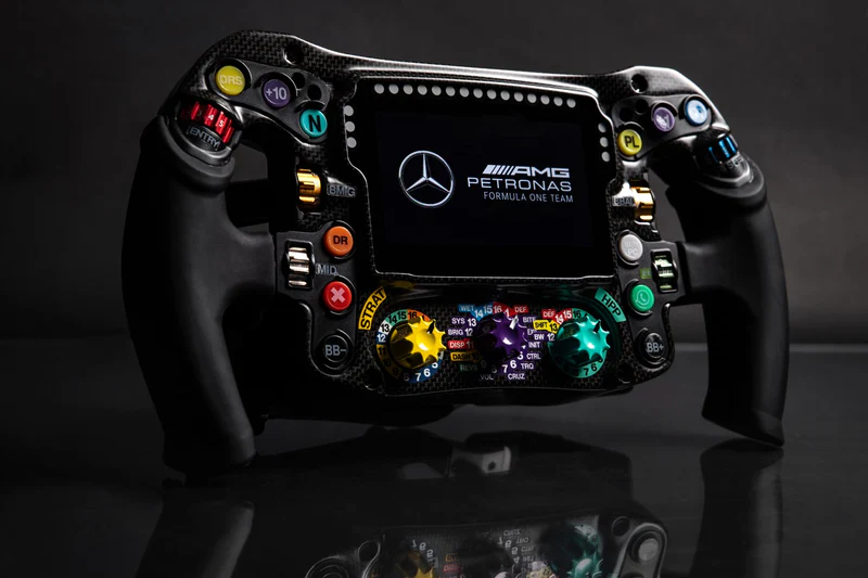 A hivatalosan licenszelt Mercedes-AMG PETRONAS Formula One Team Sim Racing kormánykerék (2024) a mérnöki munka és a formatervezés remekműve. Semmit sem spóroltak ki, hogy ez a kormány a lehető legautentikusabb legyen, egyetlen célja, hogy a legjobb szimulátor kormánykerék legyen a piacon.
