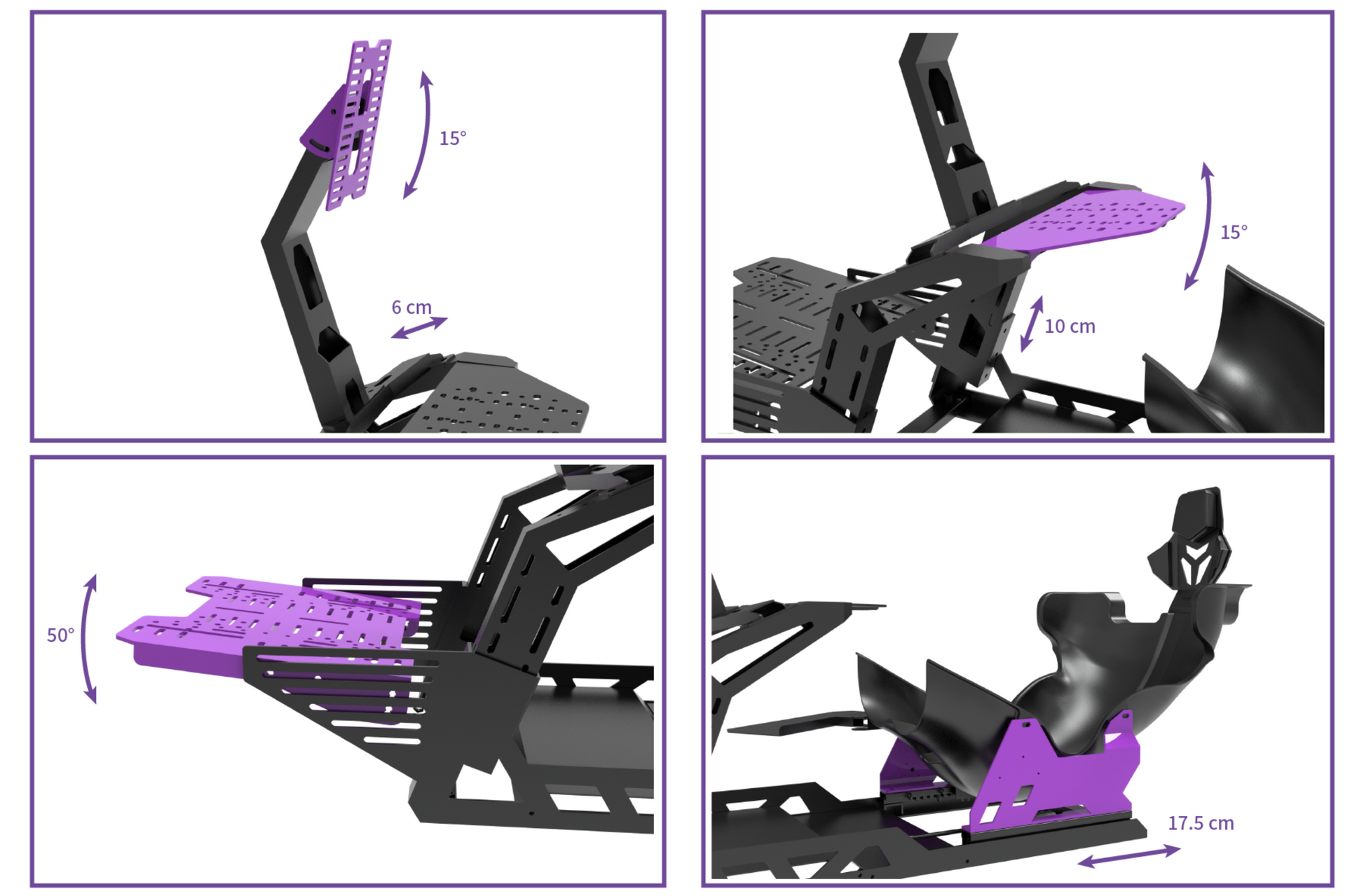 A Formula-versenyzés ergonómiáját alapul véve tervezett FP-Lite precíz állítási lehetőségeket kínál a H-pont, a dőlésszög és az R-pont tekintetében, így valósághű vezetési testtartást biztosít. A pedáltávolságot kifejezetten a szimulátoros versenyzés sajátos igényeihez optimalizálták, lehetővé téve, hogy a felhasználók otthonuk kényelméből éljék át a valódi Formula élményt.