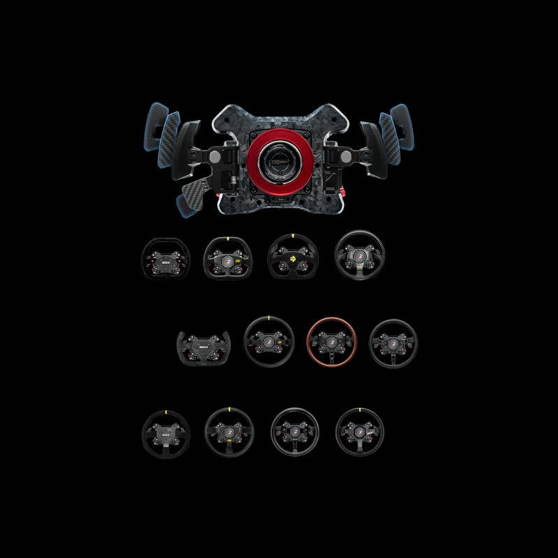 A masszív, egészen kiváló minőségű motorsportból ismerős Quick Release rendszer árammal is ellátja a kormányokat, melyek így vezeték nélkül kapcsolódnak a kormánybázishoz.